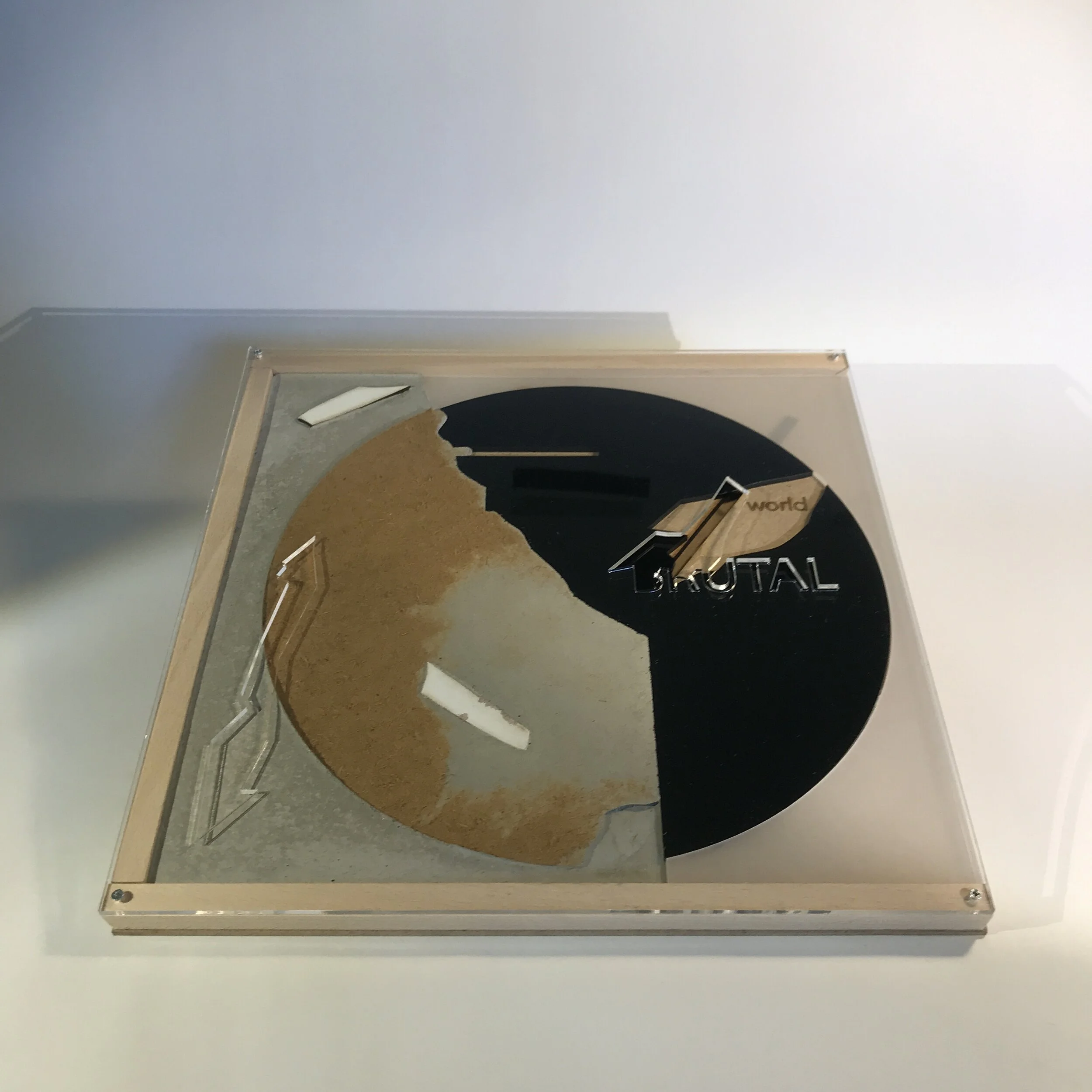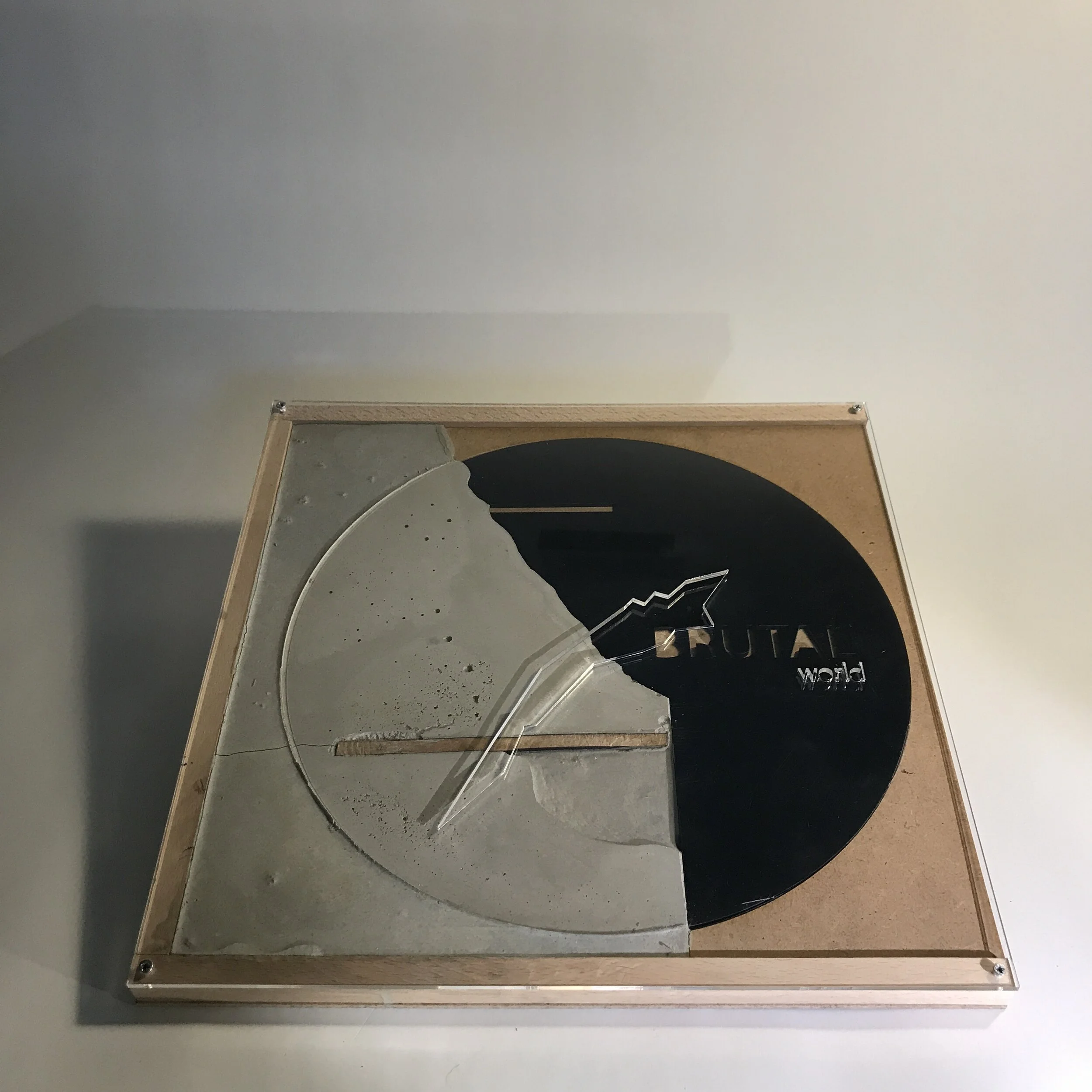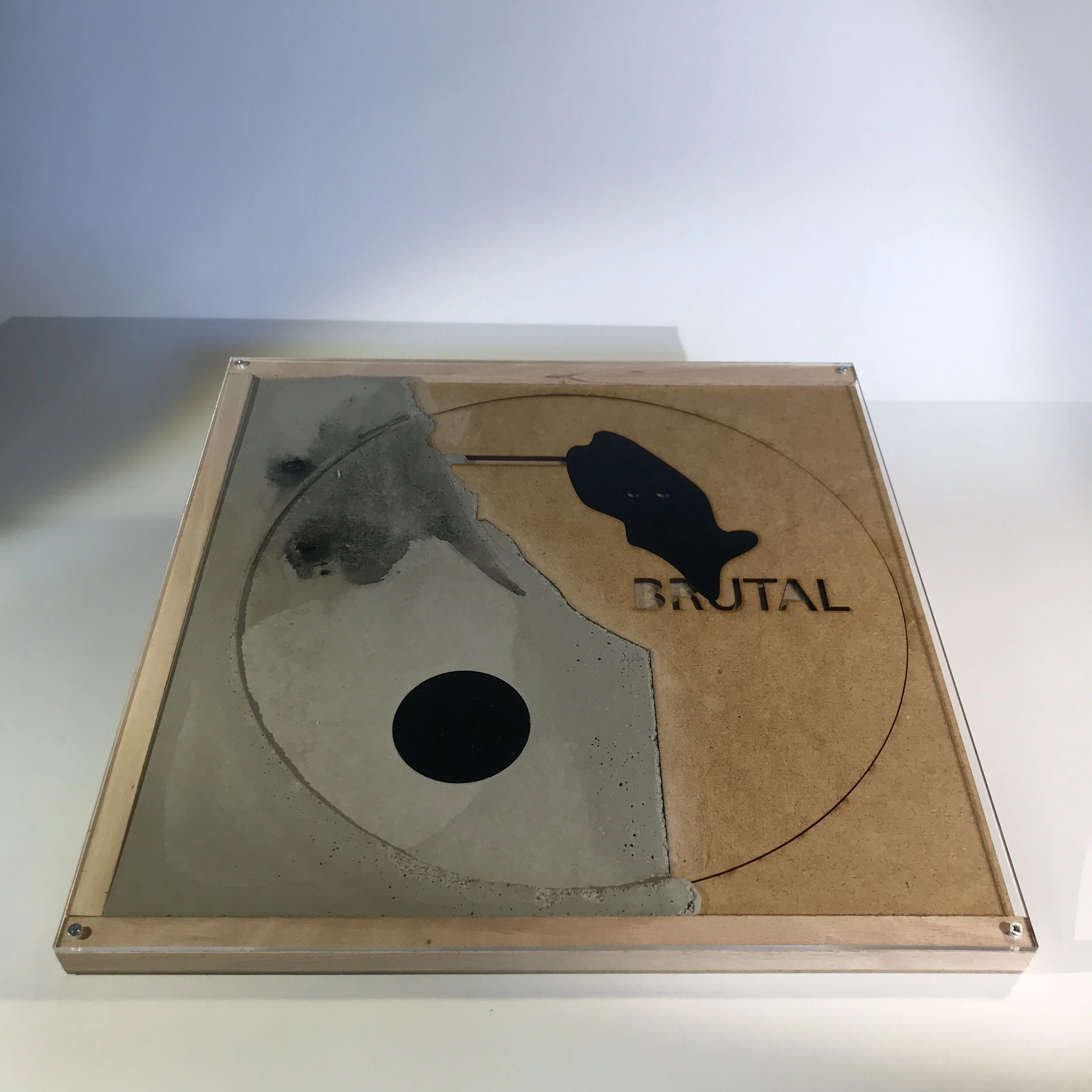 345 x 345 x 15mm Record Box. Wood, Concrete, Plexiglass.