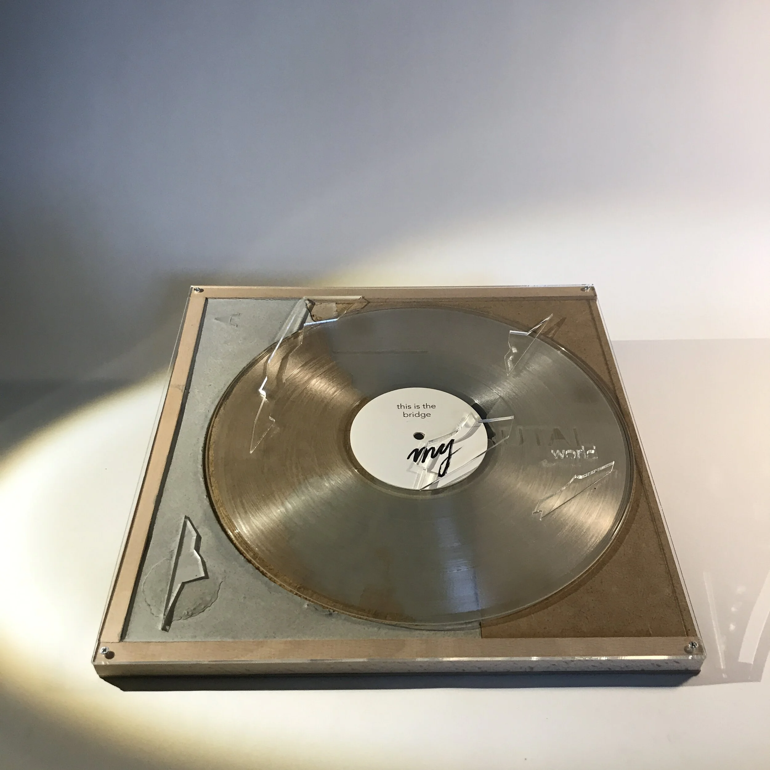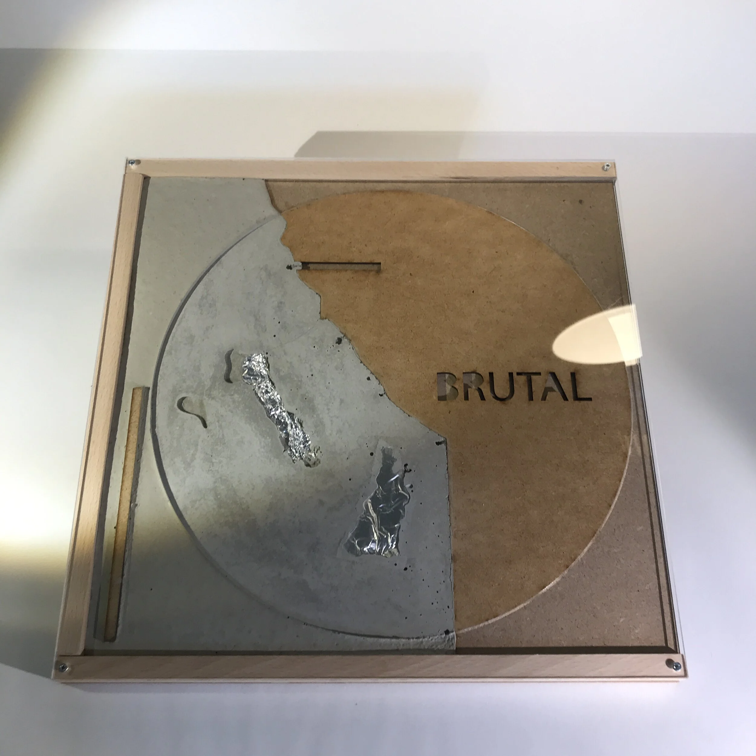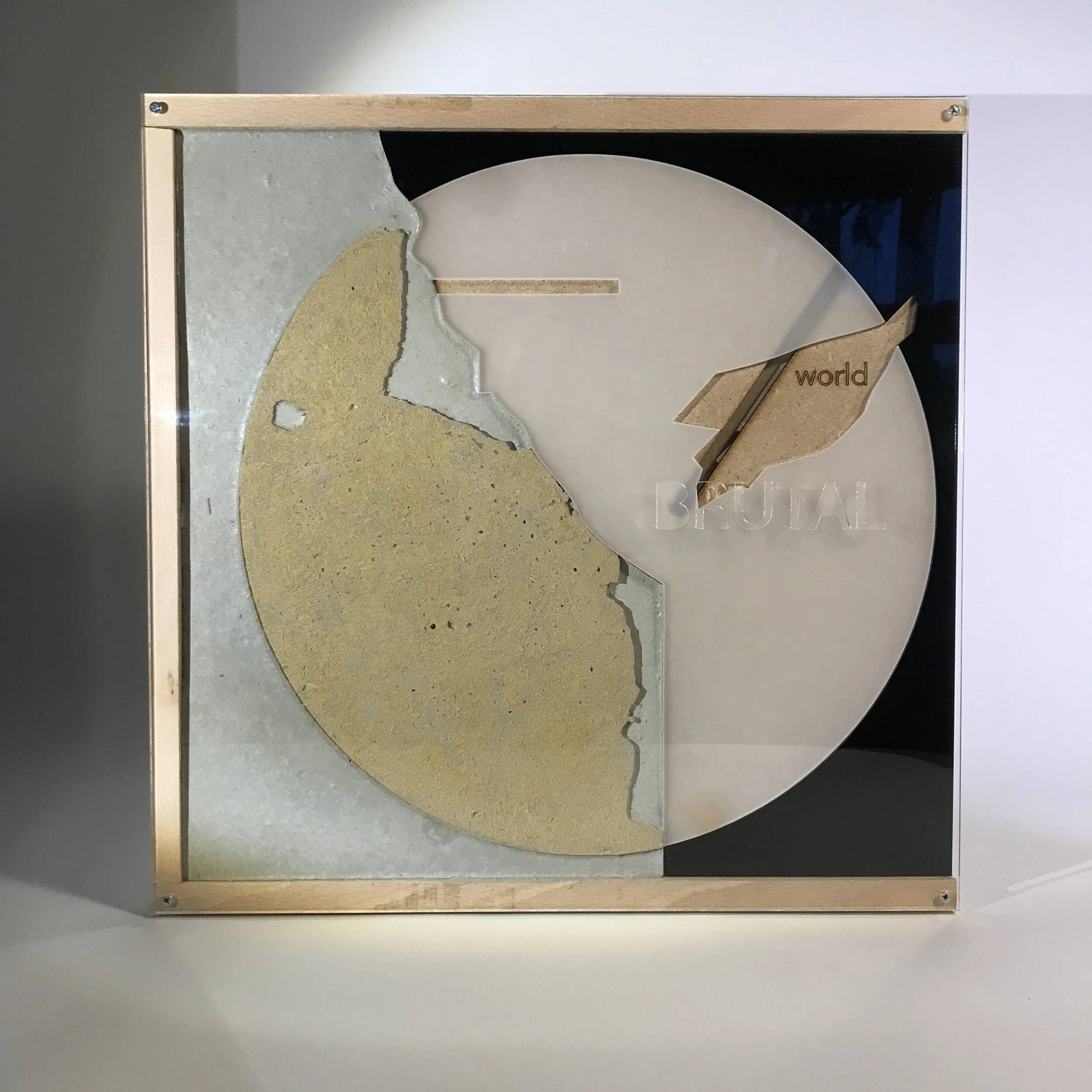 345 x 345 x 15mm Record Box. Wood, Concrete, Plexiglass.