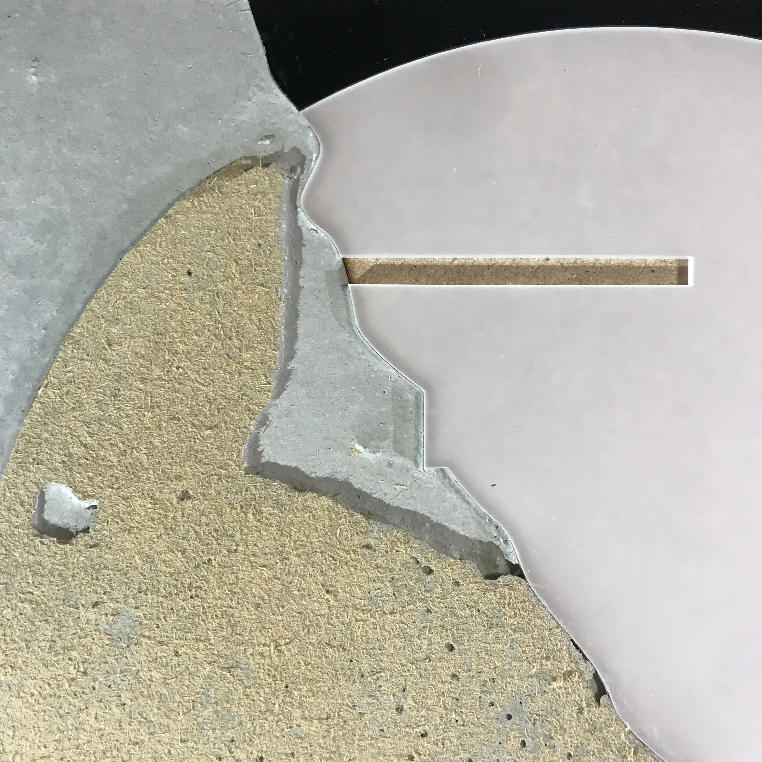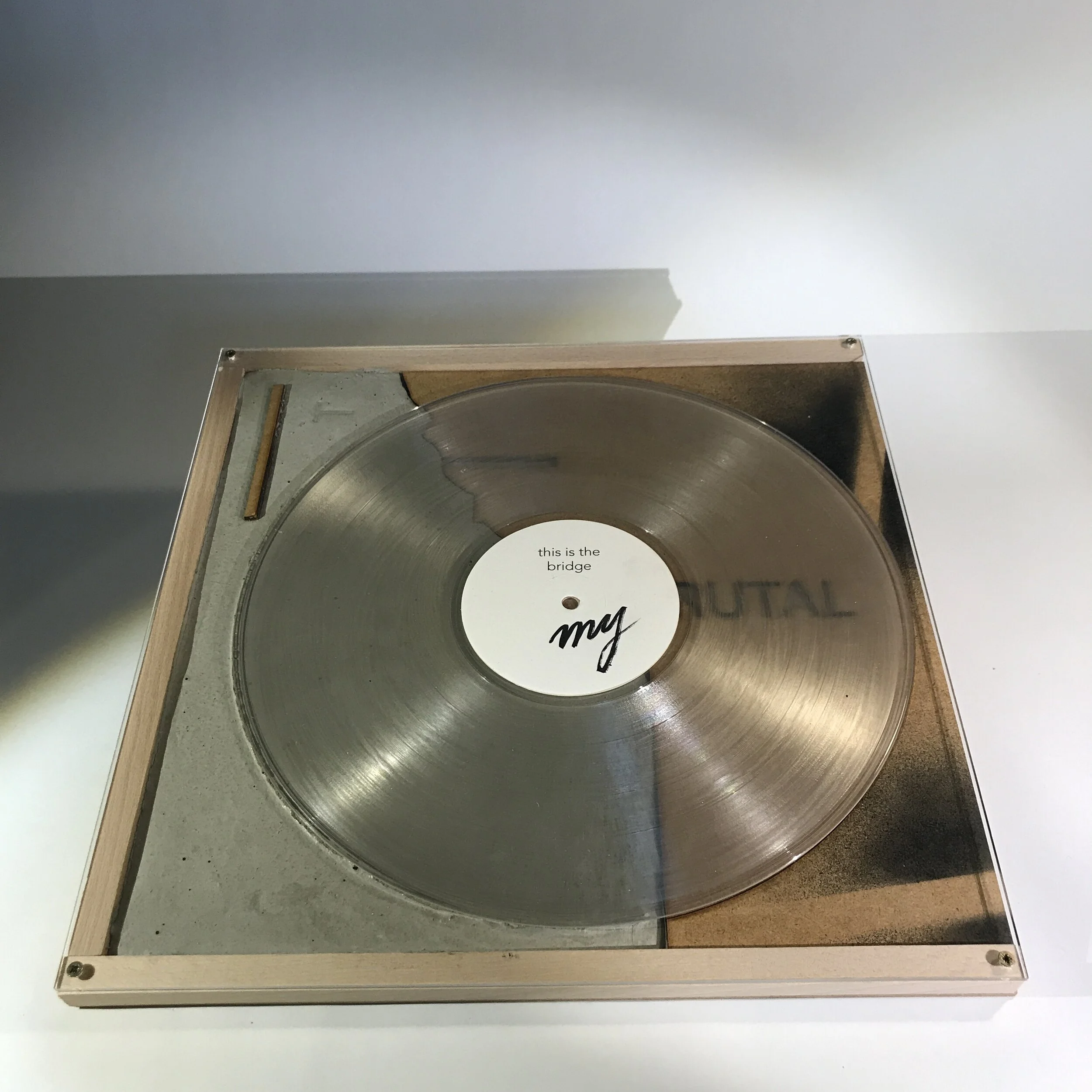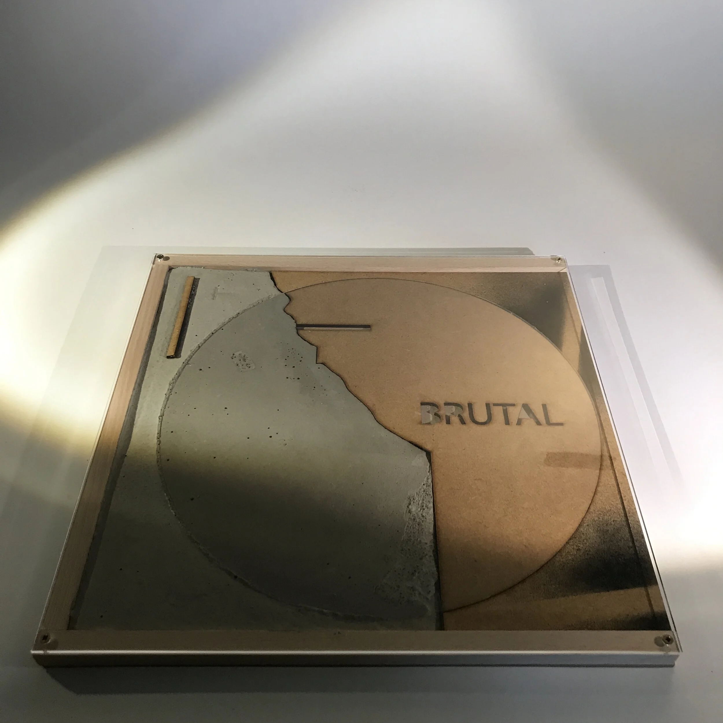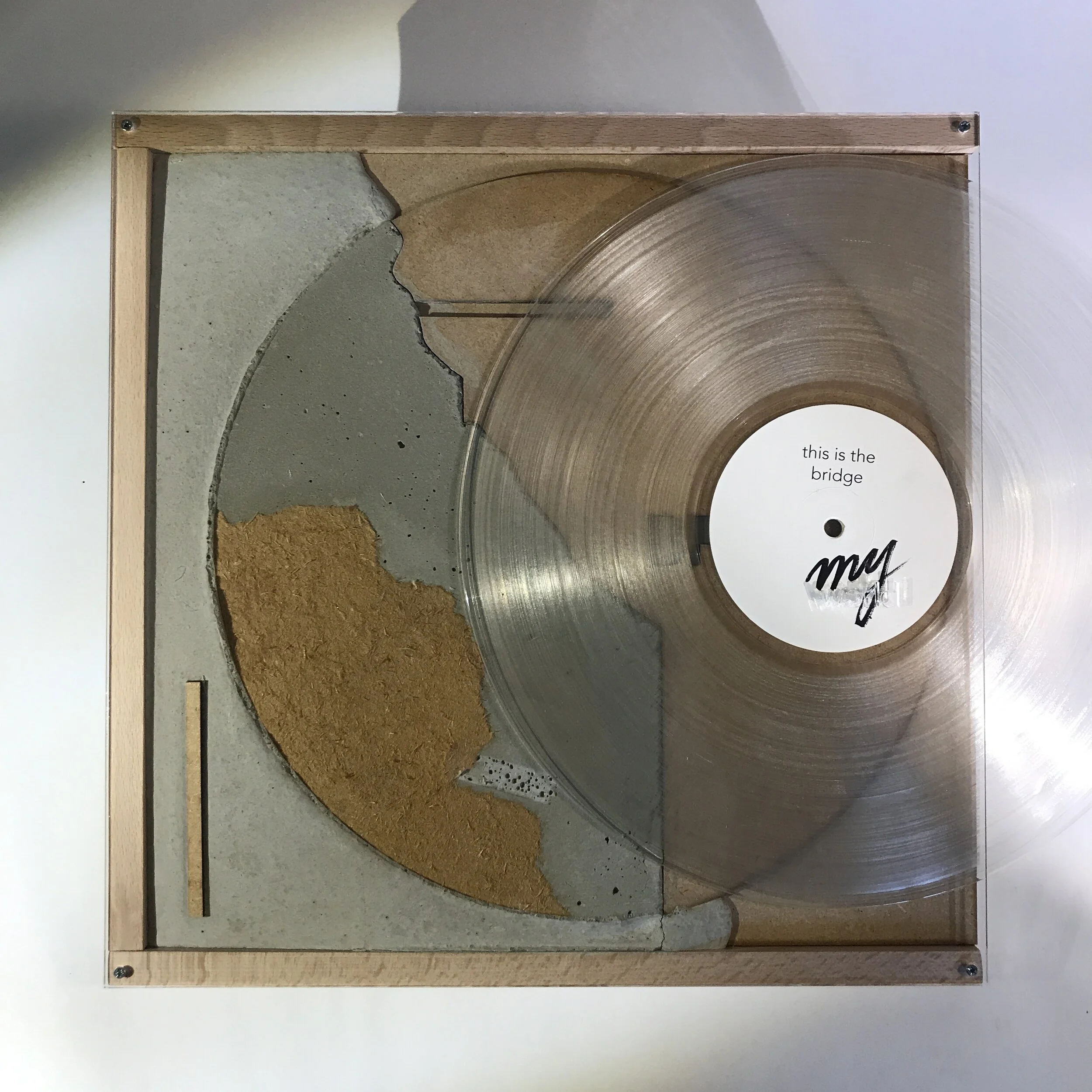 In autumn 2020, Objetrouvé was invited by Tonn Recordings label to participate in the visual design of the new album by the prolific British musical project 'This is the Bridge'. Partly inspired by the Brutalist architectural movement (as outlined in Paola Camasso's text commissioned by Mary McIntyre and included in the Standard Vinyl edition), this collection of sophisticated synth-pop machineries inspired these 15 unique record cases, evoking the techniques of architectural concrete formwork, with wooden frames, moulding forms of brutal geometries, plastic inclusions and mysterious entropic prints.